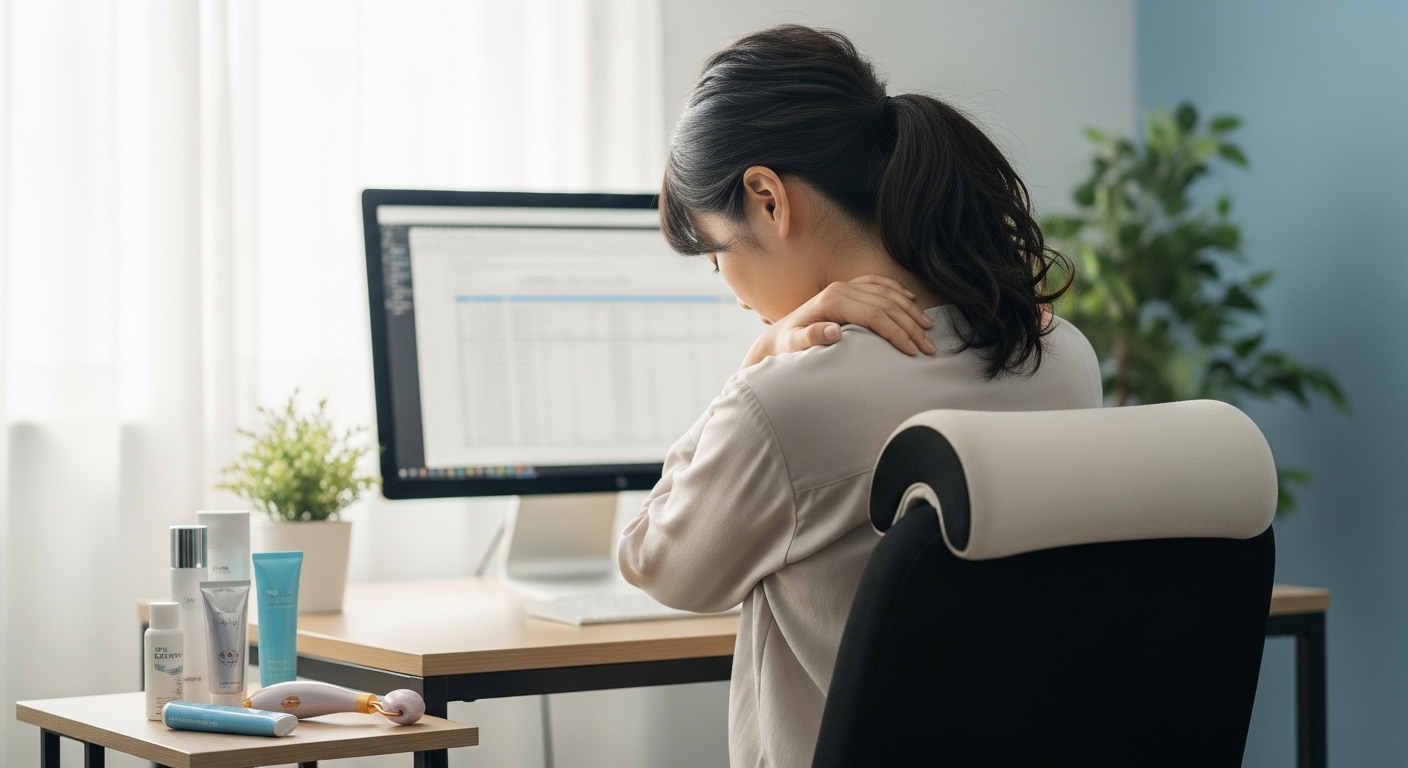 長時間のパソコン作業は、肩と首に大きな負担をかけます...
