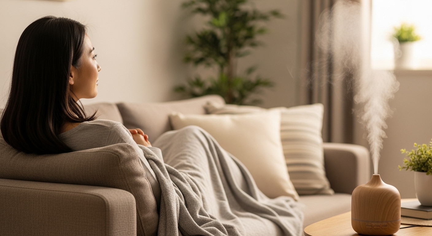 - 間接照明 × アロマディフューザー × ブランケット