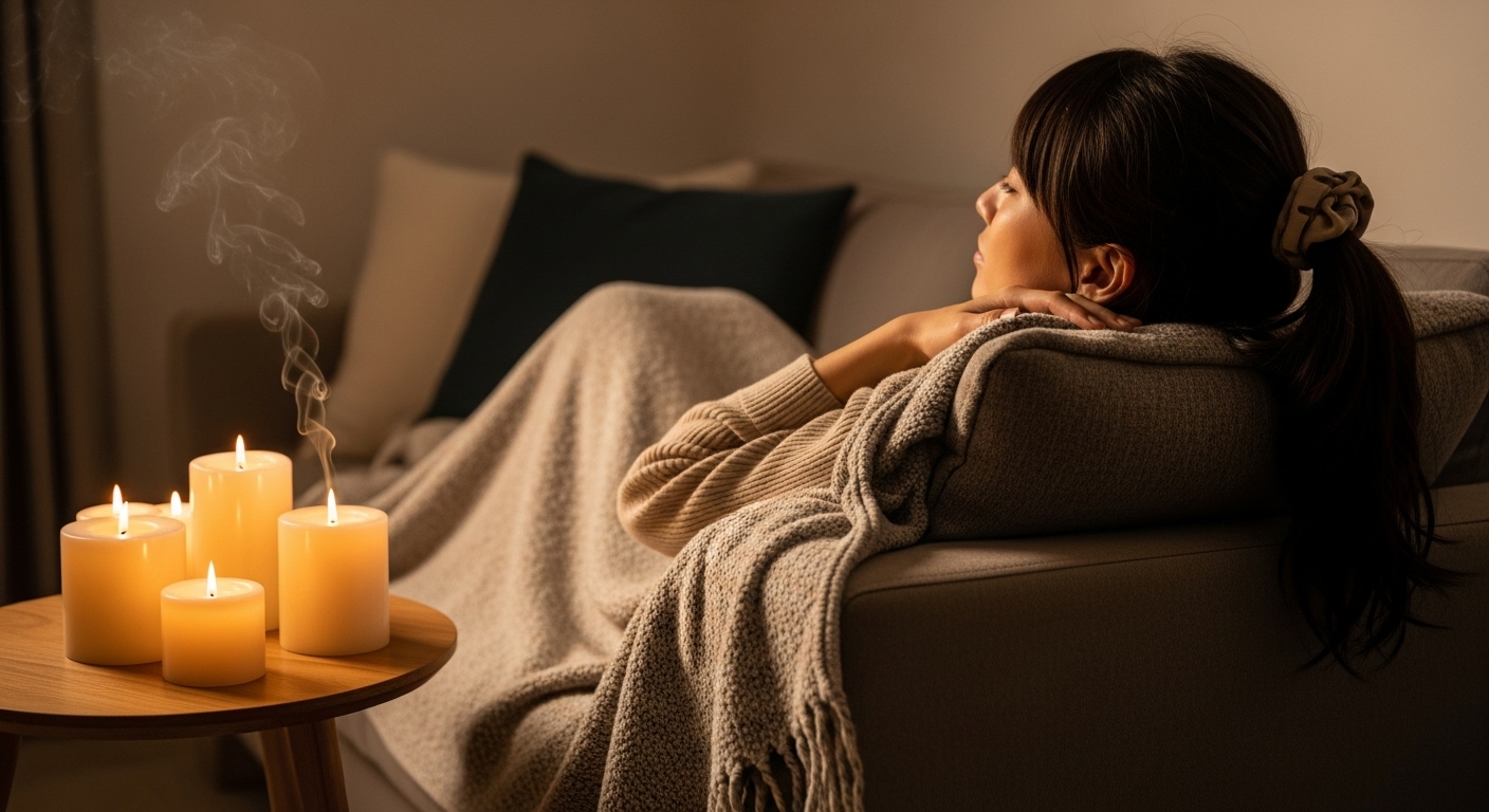 アロマディフューザーで好きな香りを楽しんだり、キャンドルの揺らぐ炎を眺めたりすることで、心が自然と落ち着いていきます。