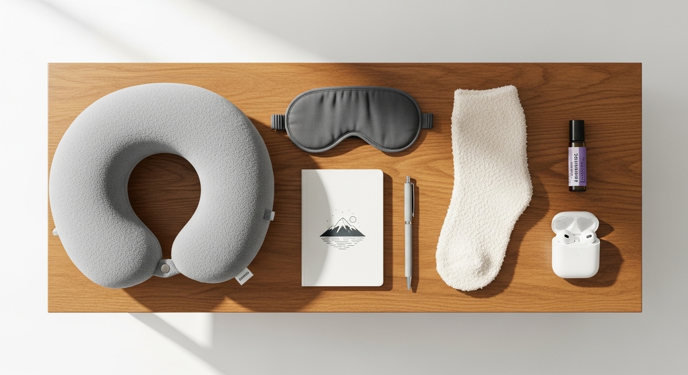 短距離ならネックピローとマスクだけで十分ですし、長距離なら少し増やすという具合に調整してください♪