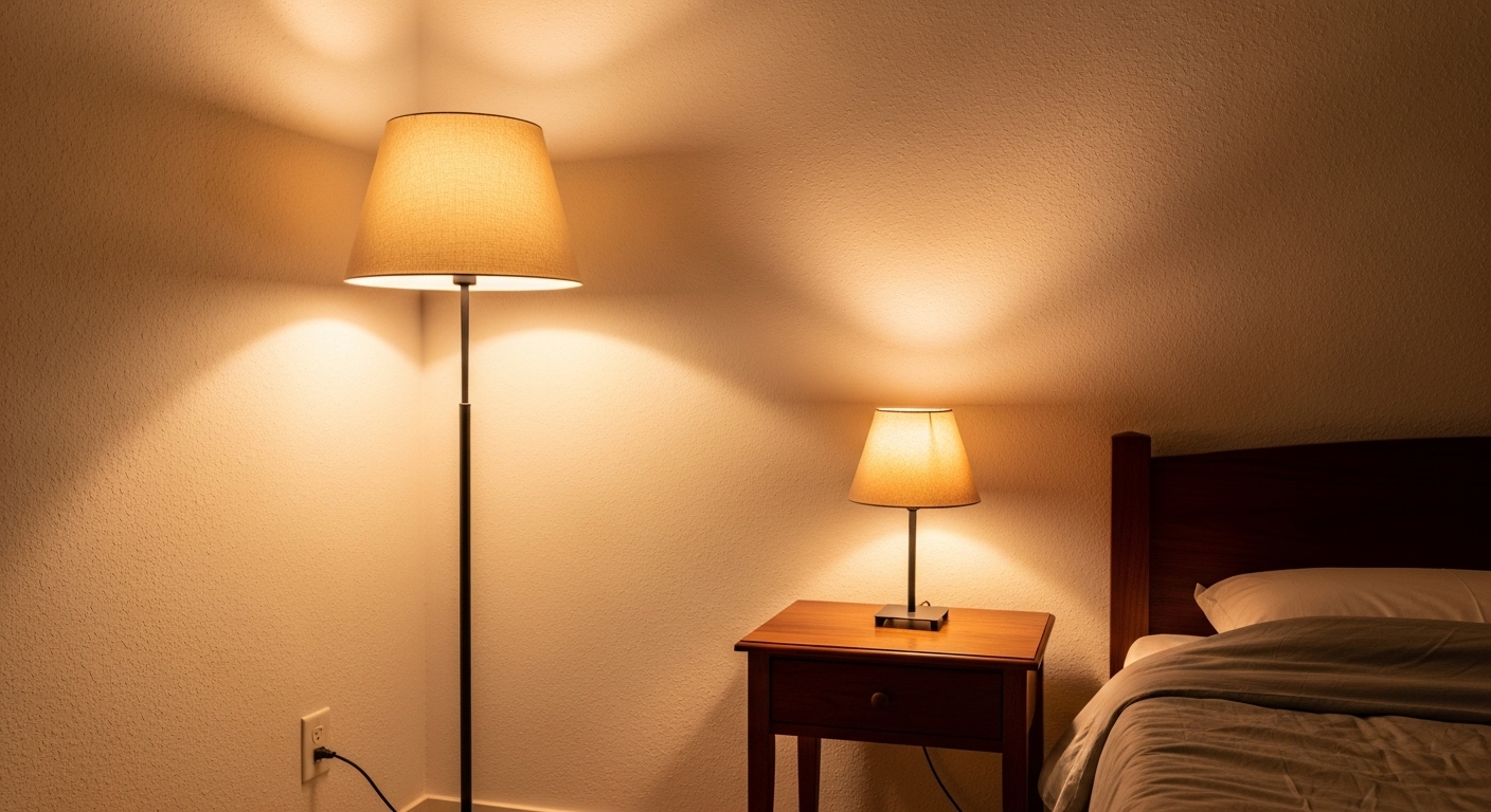寝室に白っぽい蛍光灯を使っている場合、まず電球色に変えることをおすすめします。