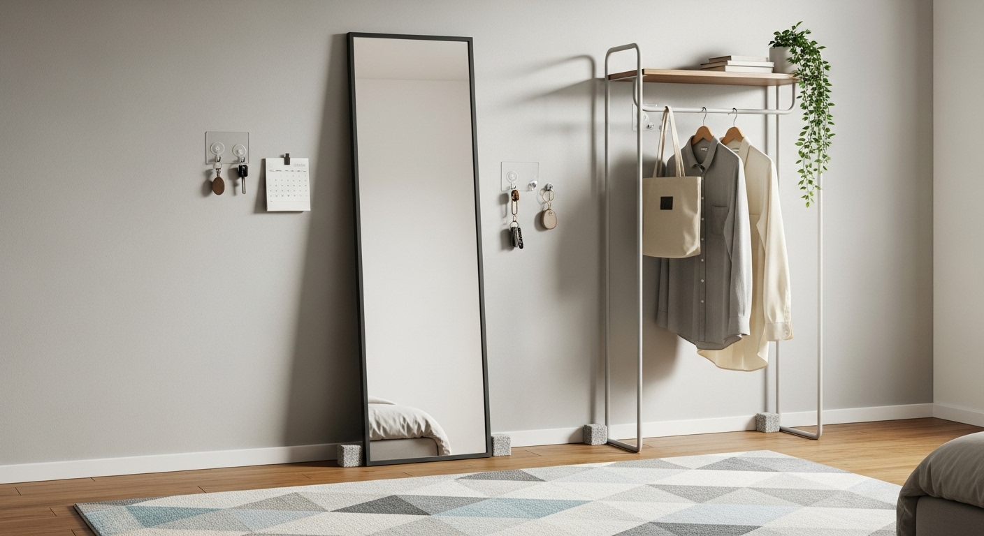 ☑ 壁に立てかけるタイプのミラーやラックを使う
