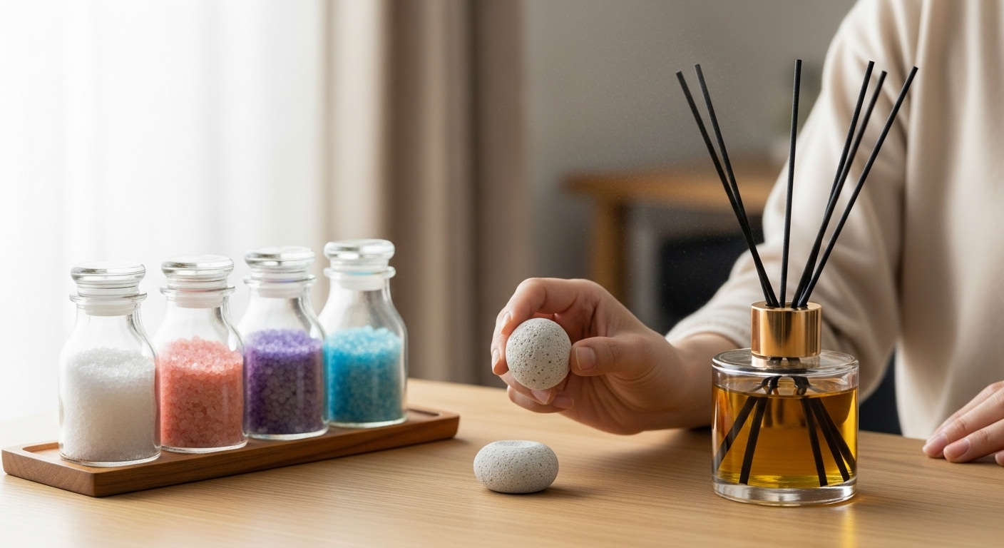 アロマストーンやリードディフューザーなら、火や電気を使わず安全に香りを楽しめます!
