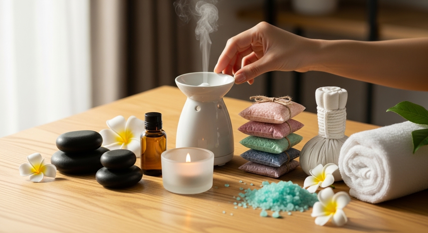 五感で楽しむリラックスタイムを演出できます。マッサージグッズ × ストレッチ本