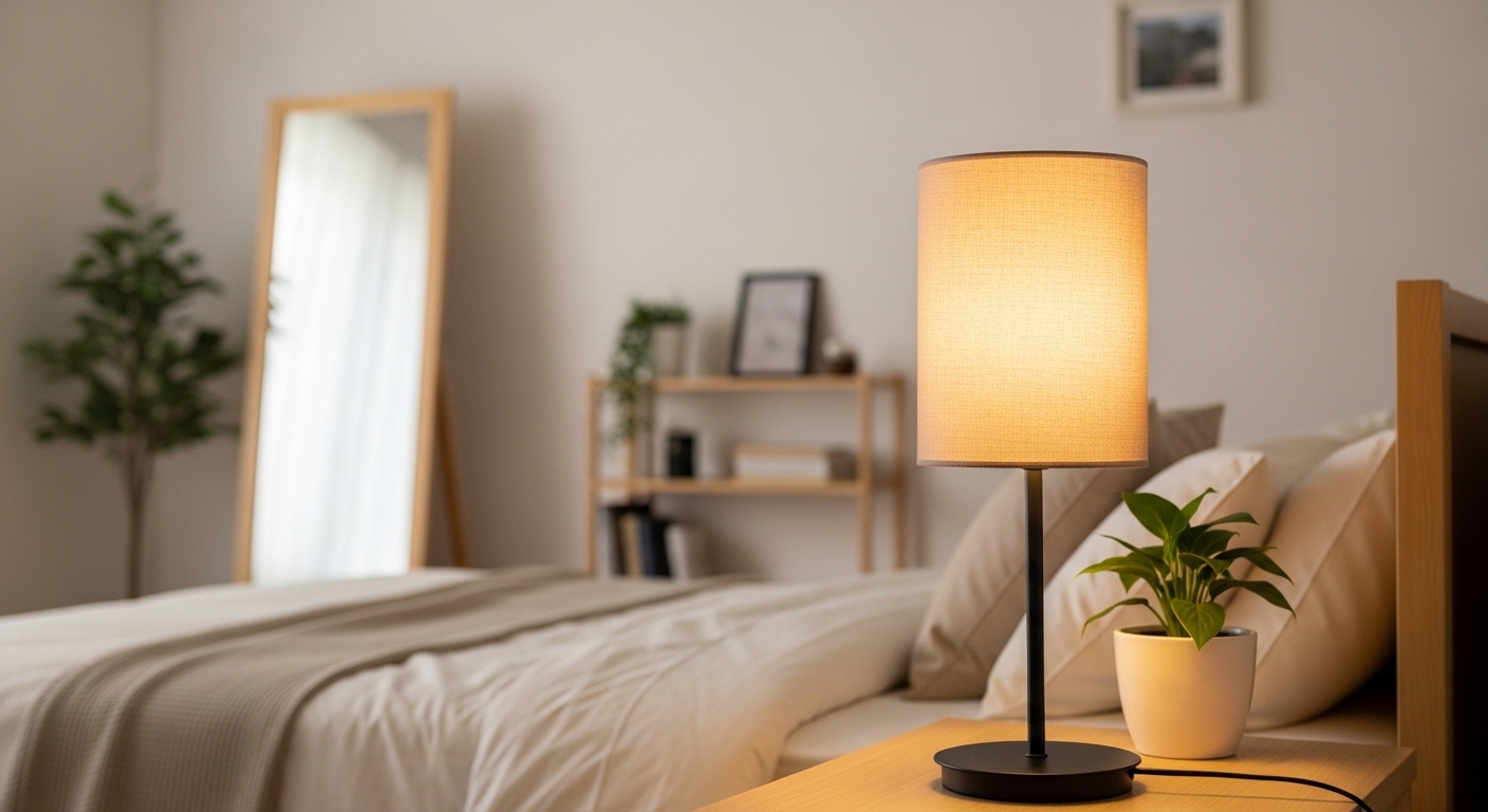 寝室に暖色系のランプを置くだけで、就寝前の空間が整います。